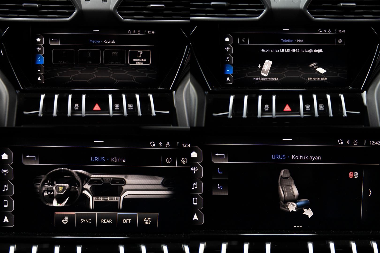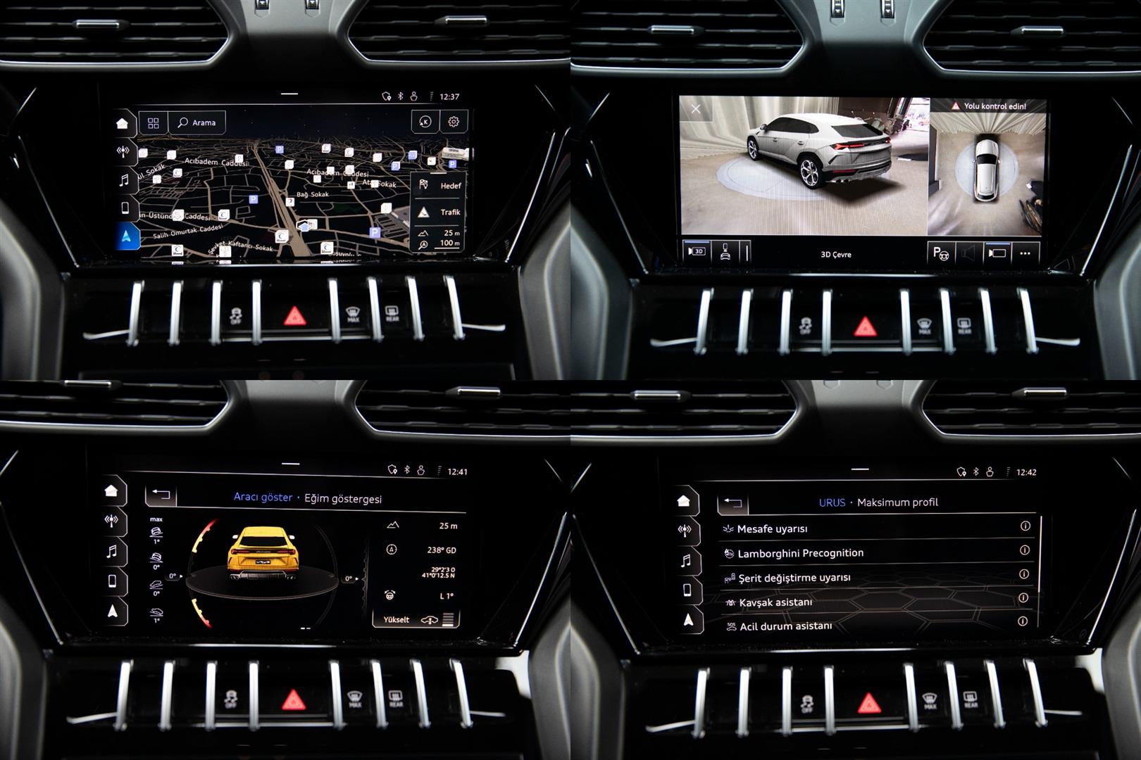 2021 LAMBORGHINI URUS 4.0 V8 AWD DIŞ RENK : SİYAH İÇ RENK : SİYAH/SARI AKSESUARLAR GERİ GÖRÜŞ KAMERASI ÖN KOLTUK MASAJ KABLOSUZ SARJ DİSTRONIC AKTİF NAVİGASYON GÜMÜŞ RENK İÇ TRİMLER CARBON SERAMİK FRENLER VE SARI FREN KALİPERLERİ ŞERİT TAKİP ASİSTANI ÇARPIŞMA ÖNLEYİCİ KAVŞAK ASİSTANI POWER TORQ GÖRÜNTÜLEYİCİ 4 TEKERLEK İÇİN GÜÇ DAĞILIM GRAFİĞİ ACİL DURUM ASİSTANI EĞİM ASİSTANI AKUSTİK , ISITMALI VE ISI YALITIMLI CAMLAR SÜRÜŞ MODLARI SÜRÜŞ ASİSTANLARI ELEKTRİKLİ BAGAJ KAPAĞI AIRMATIC ÜSTÜN HAVA KALİTESİ PAKETİ 23" TAIGATE DIAMOND JANTLAR SARI RENKLİ FREN KALİPERLERİ PANORAMİK CAM TAVAN ARKA SPOILER ELEKTRİKLİ BİCOLOR SPORTİF DERİ KOLTUKLAR Q-CITURA DERİ DÖŞEME ELEKTRİKLİ HAFIZALI ÖN KOLTUKLAR ÖN KOLTUKLARDA ISITMA ÖN KOLTUKLARDA SOĞUTMA 4 BÖLGE KLİMA 360 DERECE KAMERA HEAD-UP DISPLAY VAKUMLU KAPILAR KEYLESS-GO KOYU KROMLU DERİ SPOR DİREKSİYON LAMBORGHINI LOGOLU KOLTUK BAŞLIKLARI LAMBORGHINI PRECOGNITION DİREKSİYON ISITMA