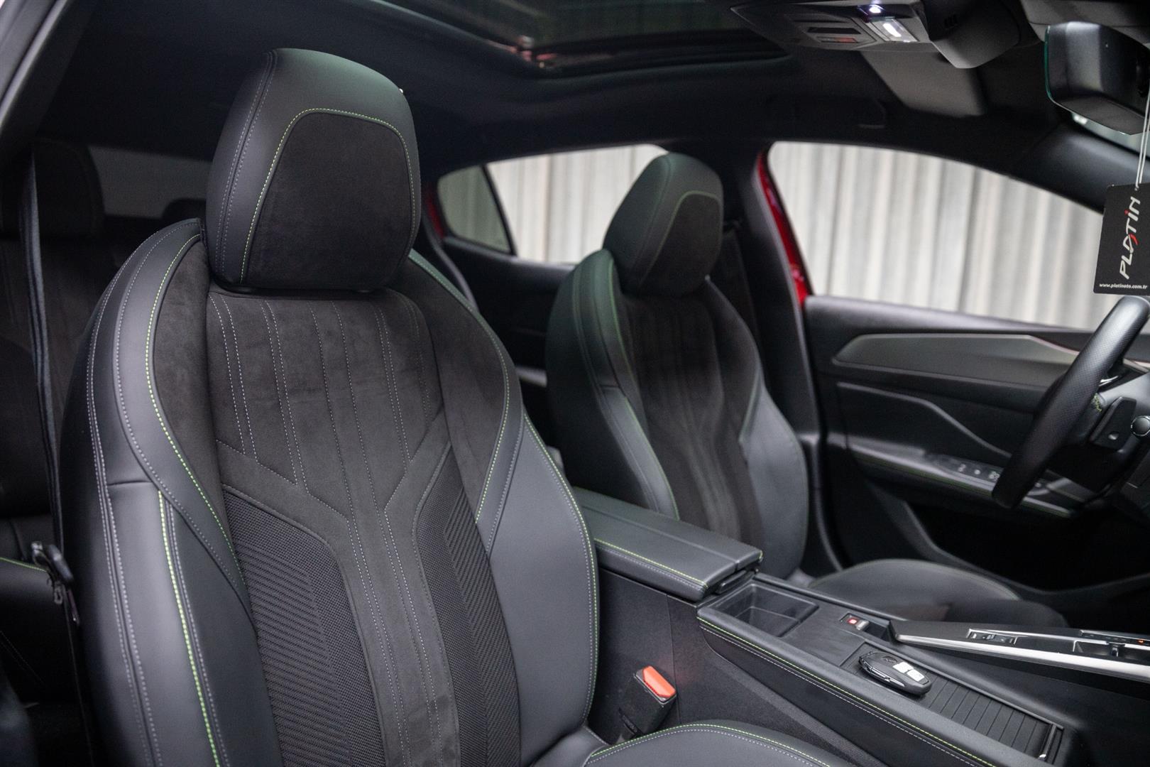 Alcantara Yarı Deri Kumaş Döşeme, Adamite Yeşili Dikişli Koltuklar